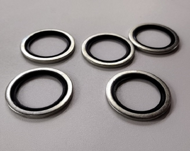 The Bonded Seal is now made all over the world but is universally known as Dowty Seals or Dowty Bonded Washer. They are high pressure seals which have generally replaced copper washers. A trapezoidal shaped rubber sealing element is bonded to a metal ring. The metal ring prevents over compression and limits the deformation of the elastomeric element.